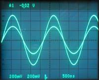 3) Tune for resonance by adjusting the variometer inductance L until waveforms V1 and V2 are in phase. Usually V2 will drop to minimum at resonance.