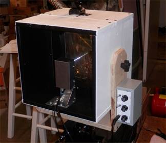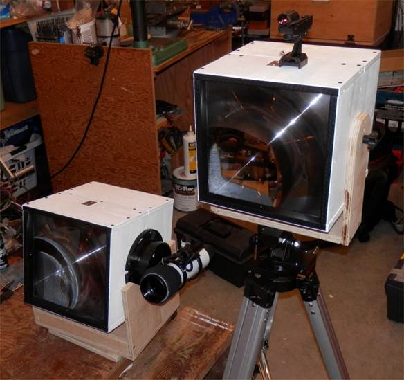 VE7CNF Lightwave Transmitter (left) and Receiver (right). Large plastic Fresnel