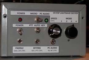 Lightwave Transmitter Exciter. Includes CW keyer and beacon generator for normal