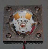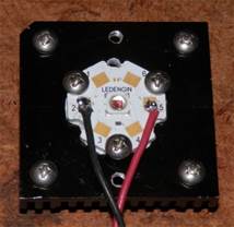 1W Deep red LED on heat sink, with converging lens to direct all the light onto