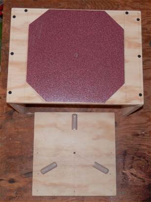 The azimuth bearing uses 3 furniture sliders on the base and a bumpy formica