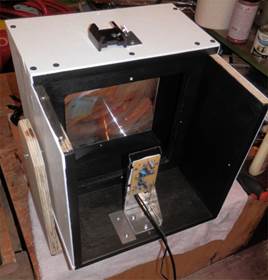Detector mounted in the receiver box. Right photo shows metal shield over the