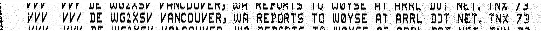 I also heard maritime station KSM on 426 kHz, and beacons from WD2XSH/20 on 472 and WG2XSV on 476.1. N6SKM and VE7JYH sent reception reports. My QRSS3 beacon was heard by K3ISM. The DX highlights of the weekend were crossband QSOs between VE7SL (Mayne Is., BC) and WA3TTS (Pittsburgh, PA) and NO3M (Saegertown, PA).