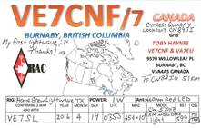 Feb 7, 2016: K7CW, N7BYD, W0YSE, and locals VE7SL, VA7MM.